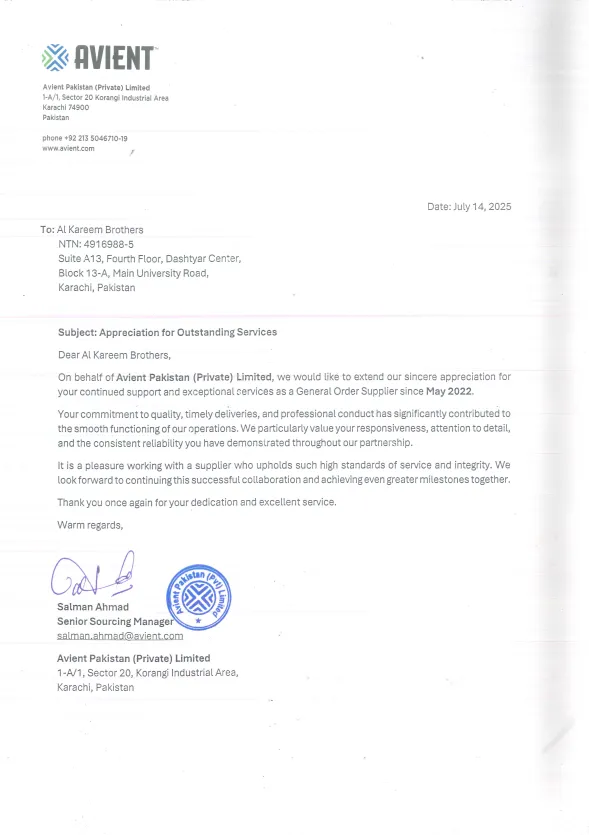 "We’ve been working with AL-KAREEM BROS for over 3 years, and they’ve always delivered quality supplies on time. Their after-sales support is what sets them apart."