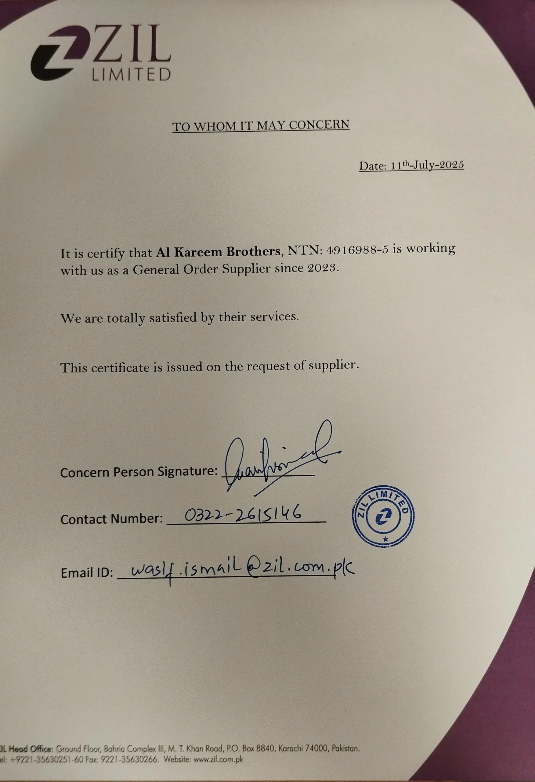 "Al Kareem Brothers is more than just a vendor for us; they are a trusted partner who ensures smooth operations for our projects."